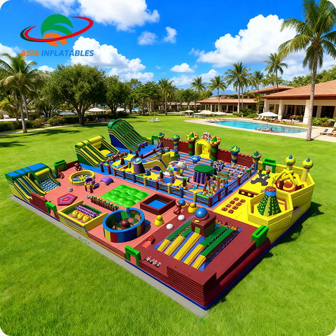 Enorme Inflável Parque Temático Playground Inflável Crianças e Adultos Fun City Castle Outdoor Playground Obstacle Course